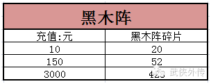 活动内容:活动期间,每日充值达到一定额度即可获得黑木阵碎片。每天活动将会重置,每次活动周期为00:00-23:59。每天每档奖励仅可获得一次。黑木阵具有6个神兽位置!集齐500个黑木阵碎片即可合成完整阵法。(第一天活动将会在4月14日更新完毕之后显示并领取奖励,4月14日00:00-更新完毕之间的充值金额会自动计入14日的活动中。)